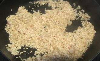 • Добавляем рис и готовим, помешивая, еще минут 5.