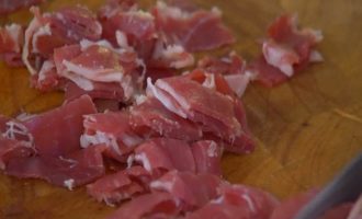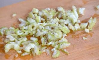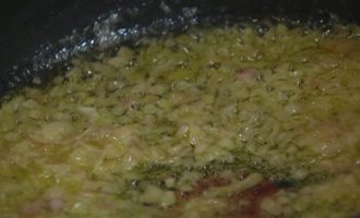 Половину сливочного масла растопить в глубокой сковороде с толстым дном и обжарить лук и сельдерей до прозрачности, затем добавить ветчину и все немного прогреть.