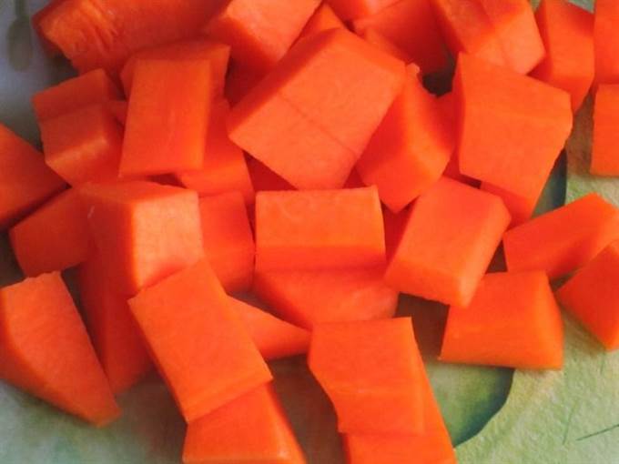 Посолить, поперчить, влить овощной бульон, накрыть крышкой и тушить 10-12 минут.
