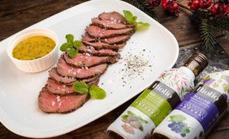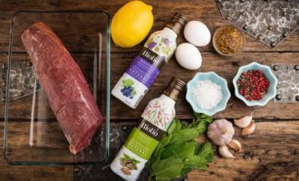 Присыпать ростбиф оставшейся мятой и подавать с горчичным соусом.