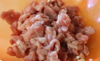 Мясо свинины порезать мелкими кубиками.