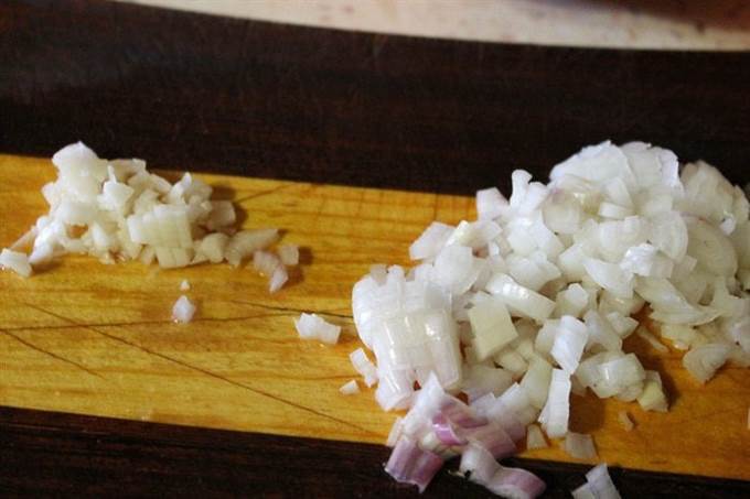 Чеснок и лук нарезать мелкими кубиками.