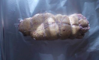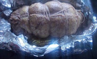 • И перевязать ниткой, завернуть в несколько слоев фольги. Запекать около 1.5 часа, при 180°C.