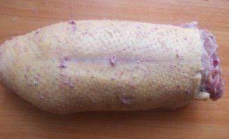 • Утку хорошо вымыть и обсушить. У меня была небольшая, мускусная. Если у вас пекинская, то рулет будет жирнее.