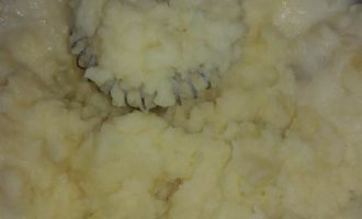 Когда картофель сварился, слила воду, добавила масло, молоко, соль и сделала пюре.