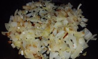 Лук нарезала и обжарила на сливочном масле до золотистого цвета, добавила к нему мелко нарубленный чеснок, обжарила еще 2 минуты.