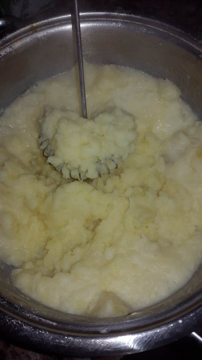 Когда картофель сварился, слила воду, добавила масло, молоко, соль и сделала пюре.