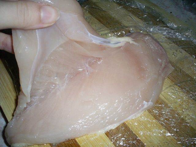 Теперь займемся филе. Нам его надо будет надрезать поперек, развернуть как книжку и отбить. Теперь обо всем этом по порядку. Для начала отрезаем малое филе, оно нам пригодится, чтоб сделать заплатку, если филе порвется при отбивании.