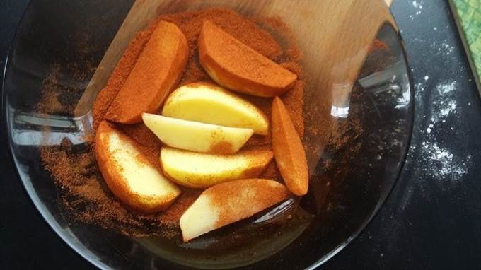 Обсушенный картофель обвалять в паприке. Я использовала смесь копченой и сладкой паприки. Поставить на огонь масло для фритюра. Следить за температурой, готовить следует на 160°С.