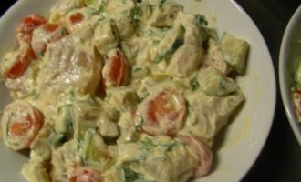 • Овощи выкладываем в рыбе. Все перемешиваем. Запекаем в духовке 180 гр минут 10-15 до готовности рыбы.