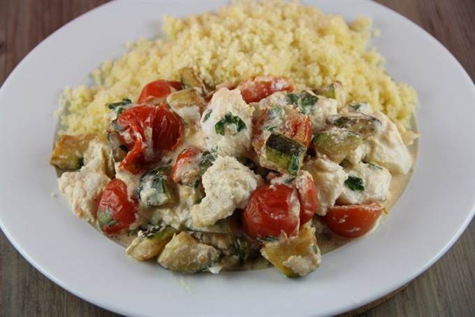 • Овощи выкладываем в рыбе. Все перемешиваем. Запекаем в духовке 180 гр минут 10-15 до готовности рыбы.