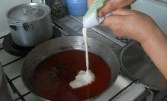 Добавляю туда немного сметаны и тщательного перемешиваю.