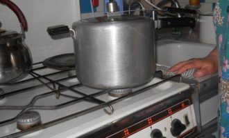 Как только скороварка начнет стравливать пар через предохранительный клапан с характерным свистом — перейти на минимальный огонь.