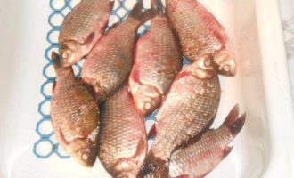 Для простоты я купила, пожалуй самую распространенную у нас рыбу — карась средних размеров. Можно брать и крупную рыбу, только необходимо будет добавлять время приготовления в скороварке на 10-15 минут. Для примера я взяла 2 кг рыбы, но можно брать и большее количество (если позволяет скороварка), увеличив пропорционально все ингредиенты. -