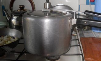Закрываем скороварку и ставим на сильный огонь до закипания.