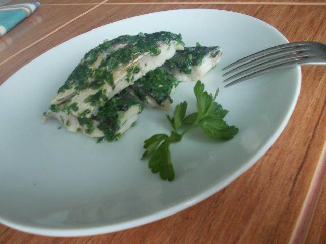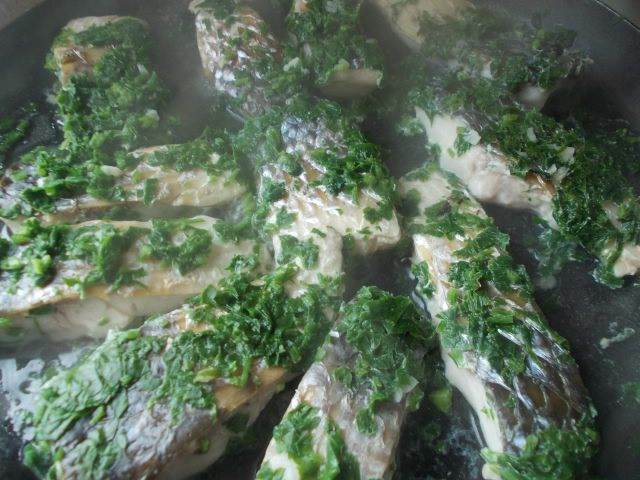 Когда рыбка немного побелеет, а это произойдет буквально через пару минут, нужно перевернуть.