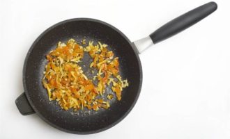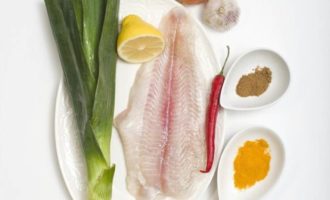 Лук, чеснок и очищенный от семян перец чили мелко нарезать и обжарить в смеси оливкового и сливочного масел в течении 5 минут. Добавить кориандр, цедру 1/2 лимона, куркуму и соль и подержать на огне еще 2-3 минуты.