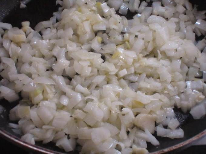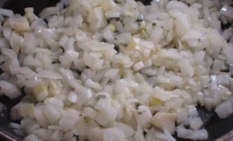 Репчатый лук и чеснок порубить и пассеровать до прозрачности в оливковом масле.
