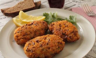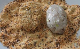 Обжарить на растительном масле на небольшом огне сначала с одной стороны без крышки, затем котлеты перевернуть и накрыть сковороду крышкой.
