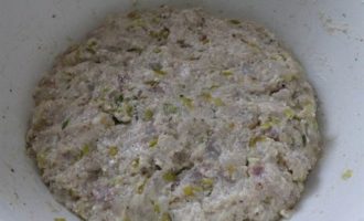 Фарш хорошо перемешать, накрыть крышкой посуду и дать постоять 30 минут.
