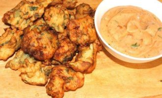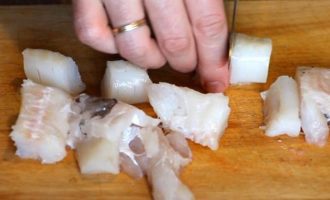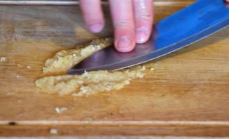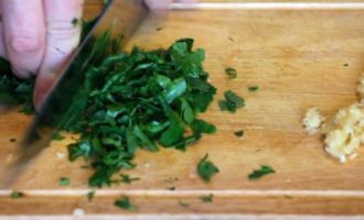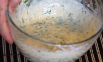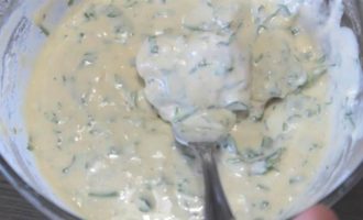 Делаем кляр для трески. Смешиваем муку, молоко с маслом, чеснок и петрушку. Консистенция должна быть как у жирной сметаны. Солим, перчим.