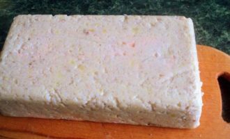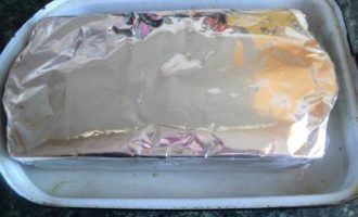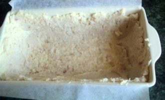 • Выложить эту массу верхним слоем. Несколько раз постучать формой об стол, чтобы масса уплотнилась.