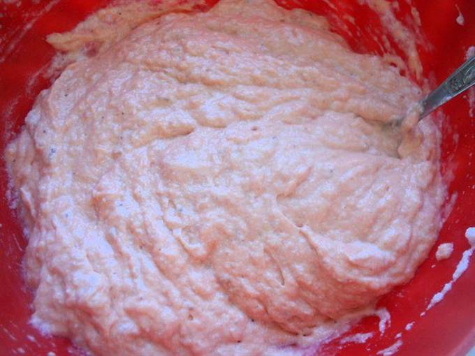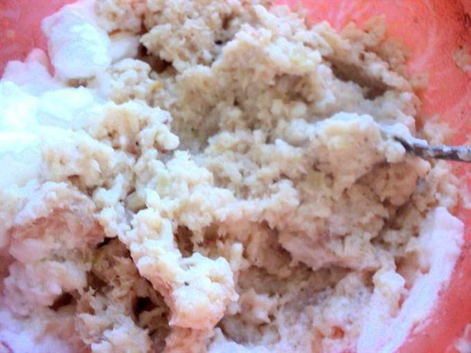 • Белки взбить со щепоткой соли до устойчивых пиков. Добавить 1/3 белков к рыбно-рисовой массе. Осторожно перемешать ложкой.