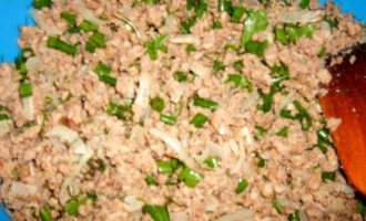 Для приготовления фарша, по отдельности отварить сердце, легкое, печень, затем все эти продукты пропустить через мясорубку.