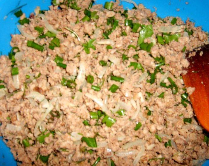 Для приготовления фарша, по отдельности отварить сердце, легкое, печень, затем все эти продукты пропустить через мясорубку.