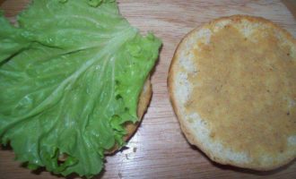 Выкладываем яйцо на бутерброд и накрываем второй частью булочки.