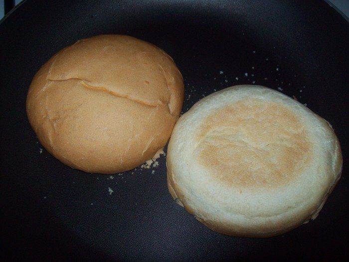 Выкладываем яйцо на бутерброд и накрываем второй частью булочки.