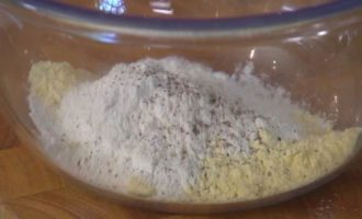 • Соединить оба вида муки, соль и перец.