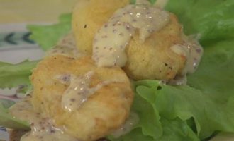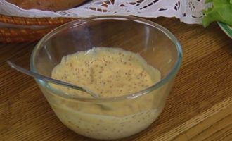 • Перемешать 3-4 ст. ложки майонеза с измельченным чесноком и горчицей с зернышками.