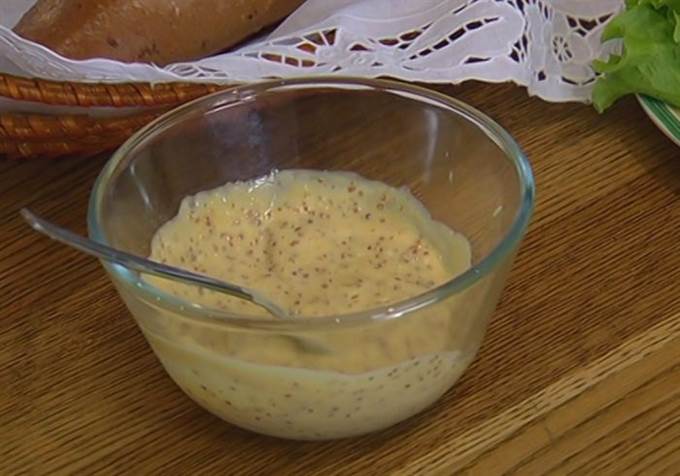 • Перемешать 3-4 ст. ложки майонеза с измельченным чесноком и горчицей с зернышками.
