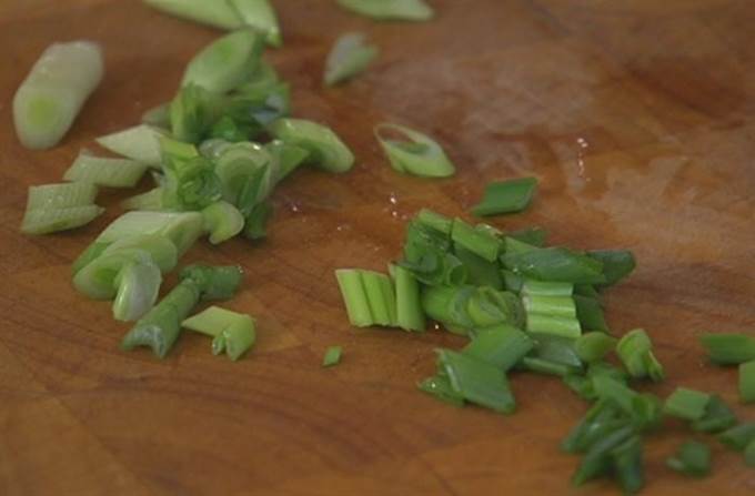 • Зеленый лук мелко порезать.