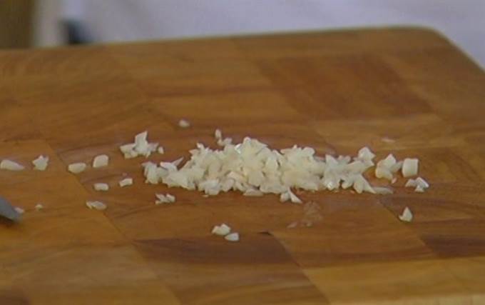 • Чеснок почистить и мелко порубить.