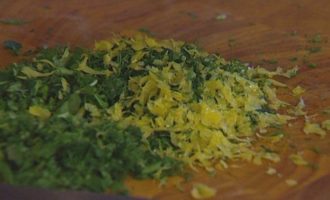Соединить цедру с зеленью, посолить, поперчить и все перемешать.