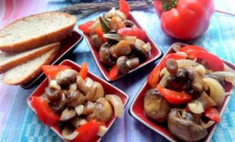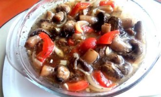 • Смешиваем маринад (кроме масла и уксуса), нагреваем и кипятим до растворения соли и сахара, выключаем огонь и добавим уксус и масло. Заливаем осторожно наши грибы!