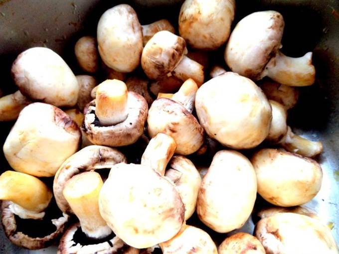 • Я делала половину от количества в рецепте. Итак шампиньоны промыть, отварить 5 минут в 1,5 л воды с добавлением 1 ст. ложки соли. Дать стечь через сито.