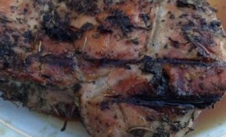 • Положить на решетку, обжарить на углях до поджаристой корочки.