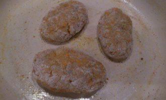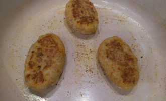 Формируем котлетки, выкладываем на разогретую сковороду, смазанную небольшим количеством масла.