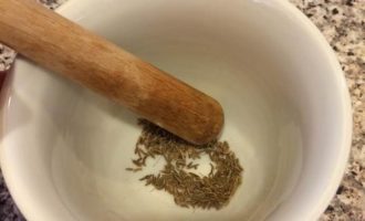 Зиру слегка растолочь в ступке.