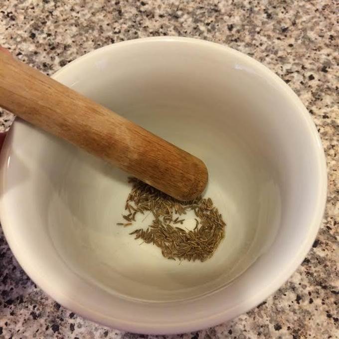 Зиру слегка растолочь в ступке.