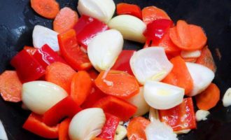 Обжариваем овощи, для этого лучше всего подойдет сковорода-вок.