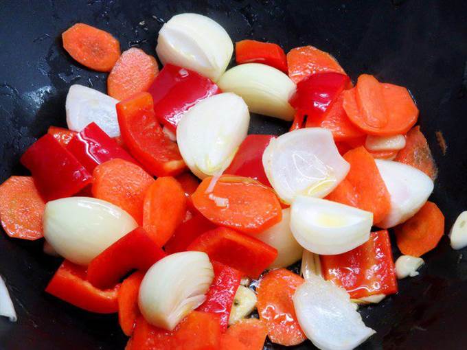Обжариваем овощи, для этого лучше всего подойдет сковорода-вок.
