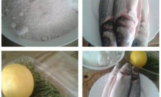 На противень выложить соль, слоем около 0,5 см, затем рыбу и накрыть ее оставшейся солью. Поставить в разогретую духовку на 30 минут при 190 градусах.