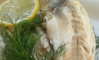 Приготовить рыбу. Рыбу распотрошить, шелуху не удалять, помыть, просушить бумажным полотенцем. Шелуха сбережет рыбу от излишнего просаливания. Рыбку натереть перцем, растительным маслом, внутрь положить дольки лимона и тимьяна.