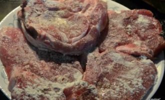 Свинину порезать на кусочки, если филе. Или используем свиные котлеты на косточке или в тонкой нарезке.