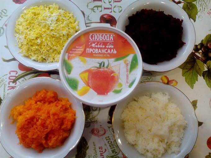 • 3 слой: морковь, промазать майонезом.