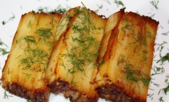 Слоеный картофель можно подавать как гарнир, и как самостоятельное блюдо.